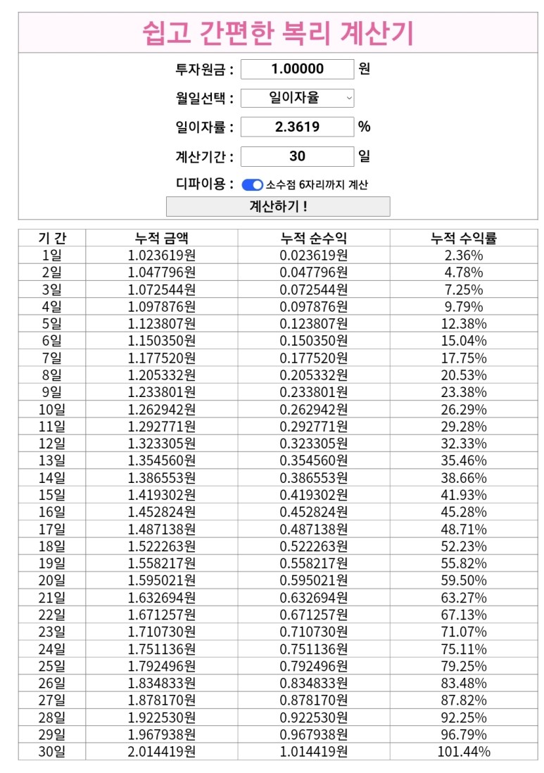 간단한 복리 계산을 해주는 페이지입니다.