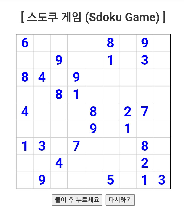 [ 스도쿠 게임 (Sdoku Game) ]
