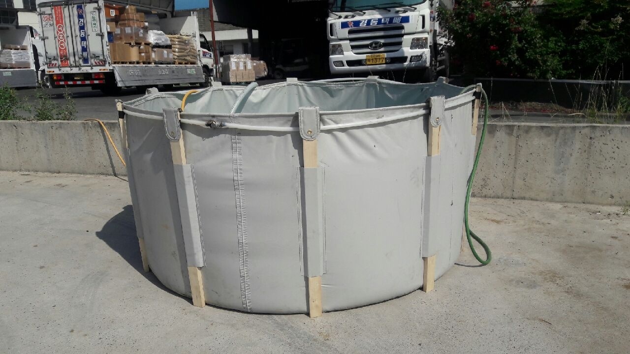 농사용 접이식 원형 타포린 물탱크, 농업용 이동식 다목적 천막 물탱크, 이동식 수영장, 누구나 쉽고 편리하게 접었다 폈다 설치 및 이동이 용이, 고강도 압축원단 사용으로 방수 및 강한 내구성을 가지고 있습니다.배수구 직경 50mm 하단 1개 기본 장착 추가 장착시 1개당 3만원 비용 발생.