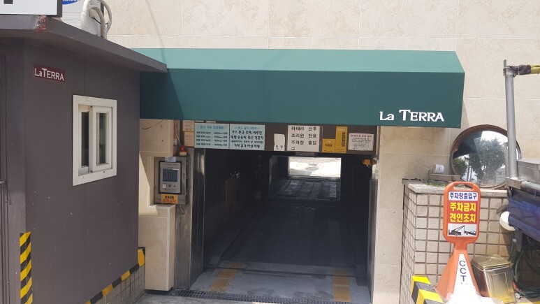 강서구 화곡동 목동사거리 라테라산후조리원 주차장 입구 비막이용 고정어닝 설치