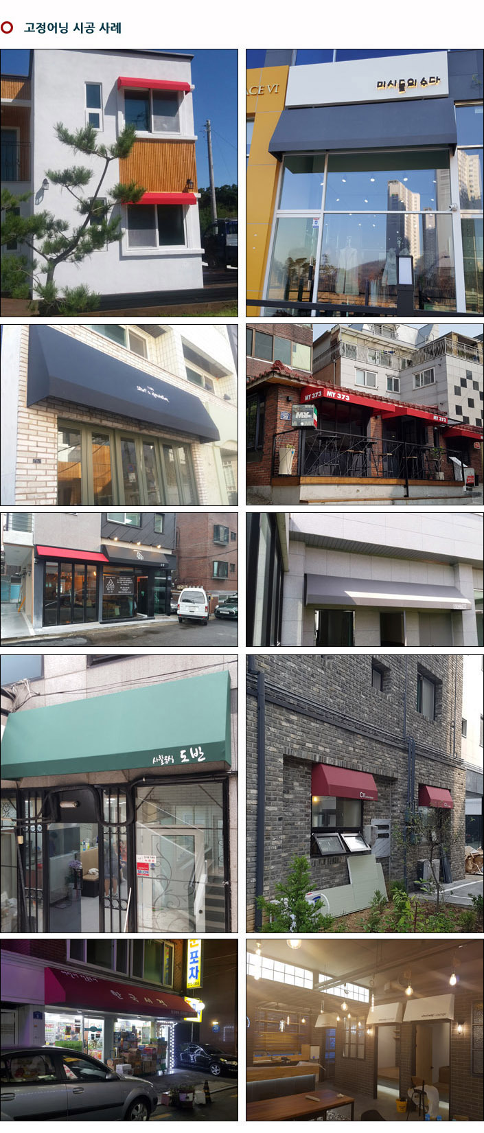 접이식어닝 (수동어닝,전동어닝) / 프라자어닝 / 간판대용 고정어닝 / 아스테이지(방풍막 비닐) / 렉산시공 및 방부목 데크설치(옥상.발코니.테라스.출입문) / 천막 생산 제작 및 시공하는 전문업체입니다. (프라자어닝:벽이 없거나 낮은 경우 구조물 설치 | 전동어닝:스위치방식,리모컨방식 | 아스테이지:겨울 추위 방풍비닐등)