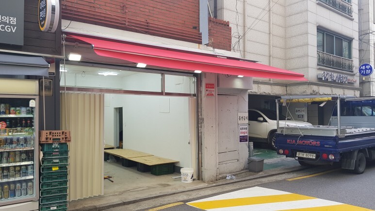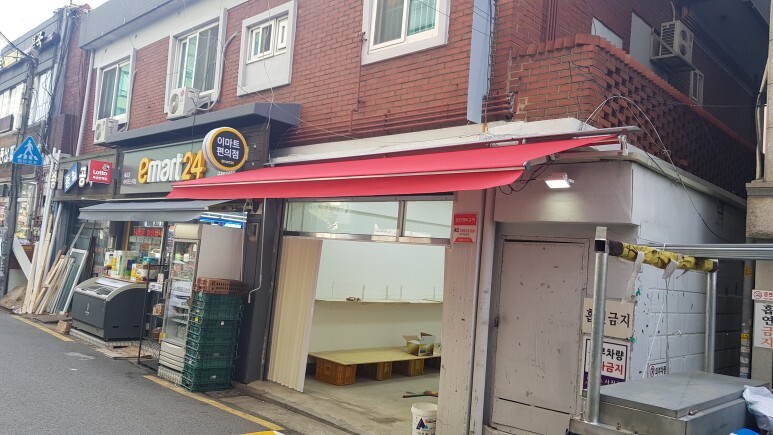 광진구 군자동 과일가게 접이식 수동어닝 시공