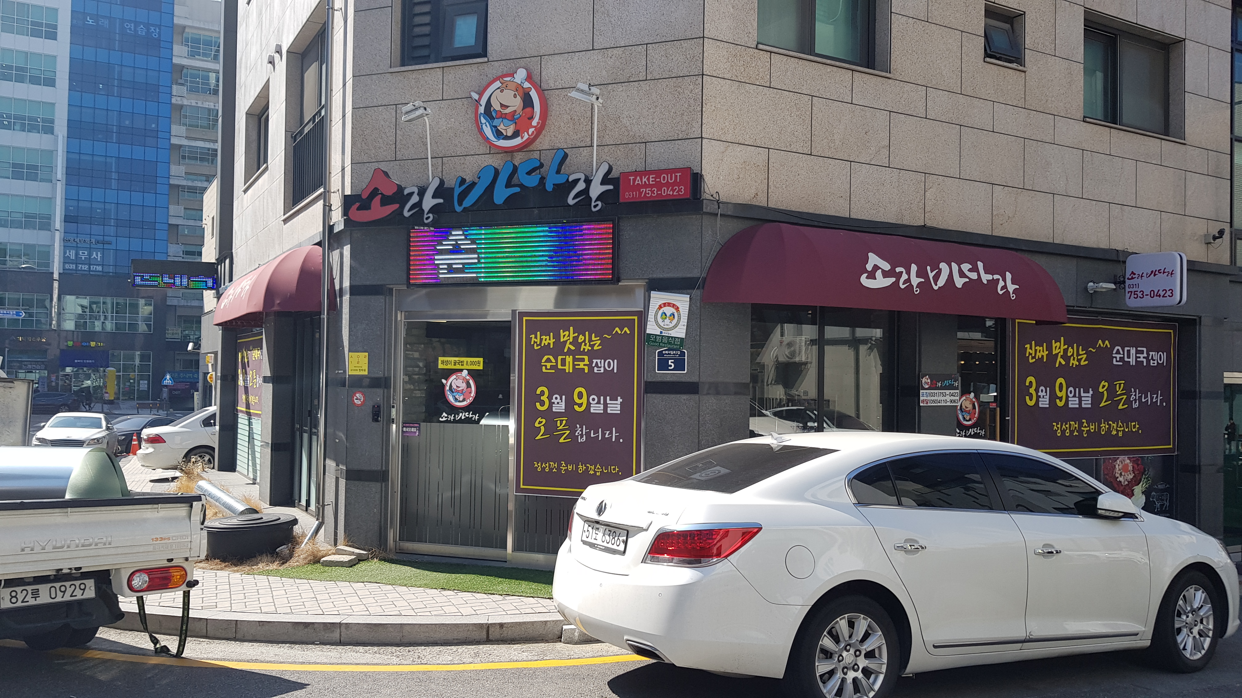 성남시 수정구 창곡동 성남위례신도시 소문난순대국 방풍막 및 접이식어닝 수동어닝 설치